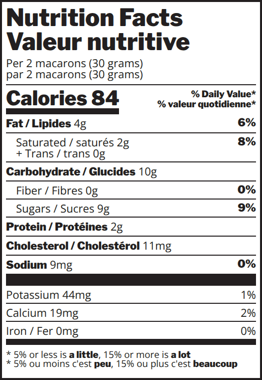 Tangy lemon curd filling injected into a smooth white chocolate ganache. The light almond shells with generous amounts of poppy seeds mixed within encase each bite in perfect harmony, creating a macaron that’s both bright and indulgent.