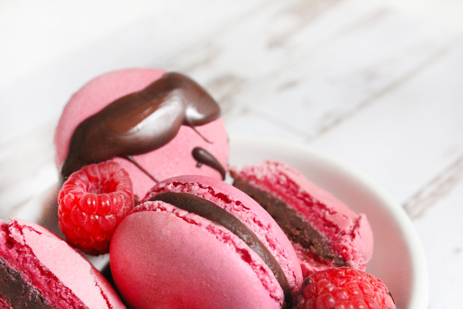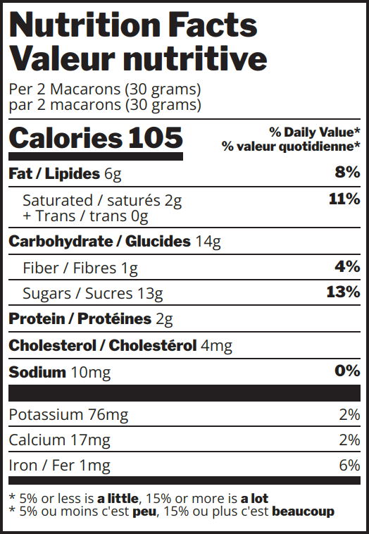 Ingredients: Sugars (icing sugar (sugar, corn starch), sugar) • almonds • semi-sweet chocolate (unsweetened chocolate, sugar, cocoa butter, soy lecithin, sunflower lecithin, canola lecithin, natural vanilla flavour, milk ingredients) • liquid egg white • whipping cream 36% m.f.(cream, milk, carrageenan) • organic raspberry jam (organic seedless raspberry puree, organic cane sugar, pectin solution(water, apple pectin), ascorbic acid (vitamin c), citric acid) • water • butter • cochineal • egg white powder(egg white, citric acid, baker’s yeast) • vanilla extract (filtered water, organic ethyl alcohol, organic vanilla beans)