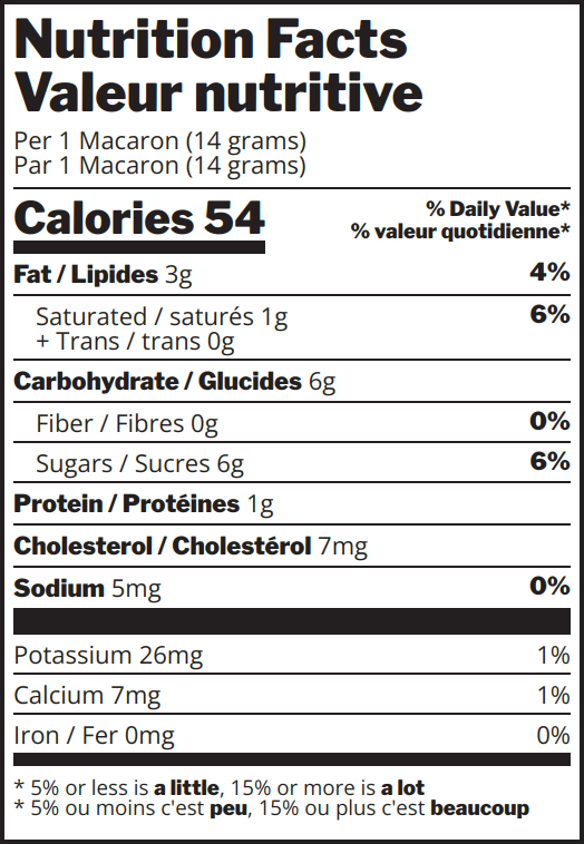 Ingredients: Sugars (sugar, icing sugar (sugar, corn starch)) • Almonds • Egg whites • Butter • Morello cherries • Semi-sweet choclate (sugar, unsweetened chocolate, cocoa butter, milkfat, soy lecethin, natural vanilla flavour) • Egg yolks (egg yolks, sugar) • Water • Cocoa powder • Lemon juice • Cochineal • Citric acid