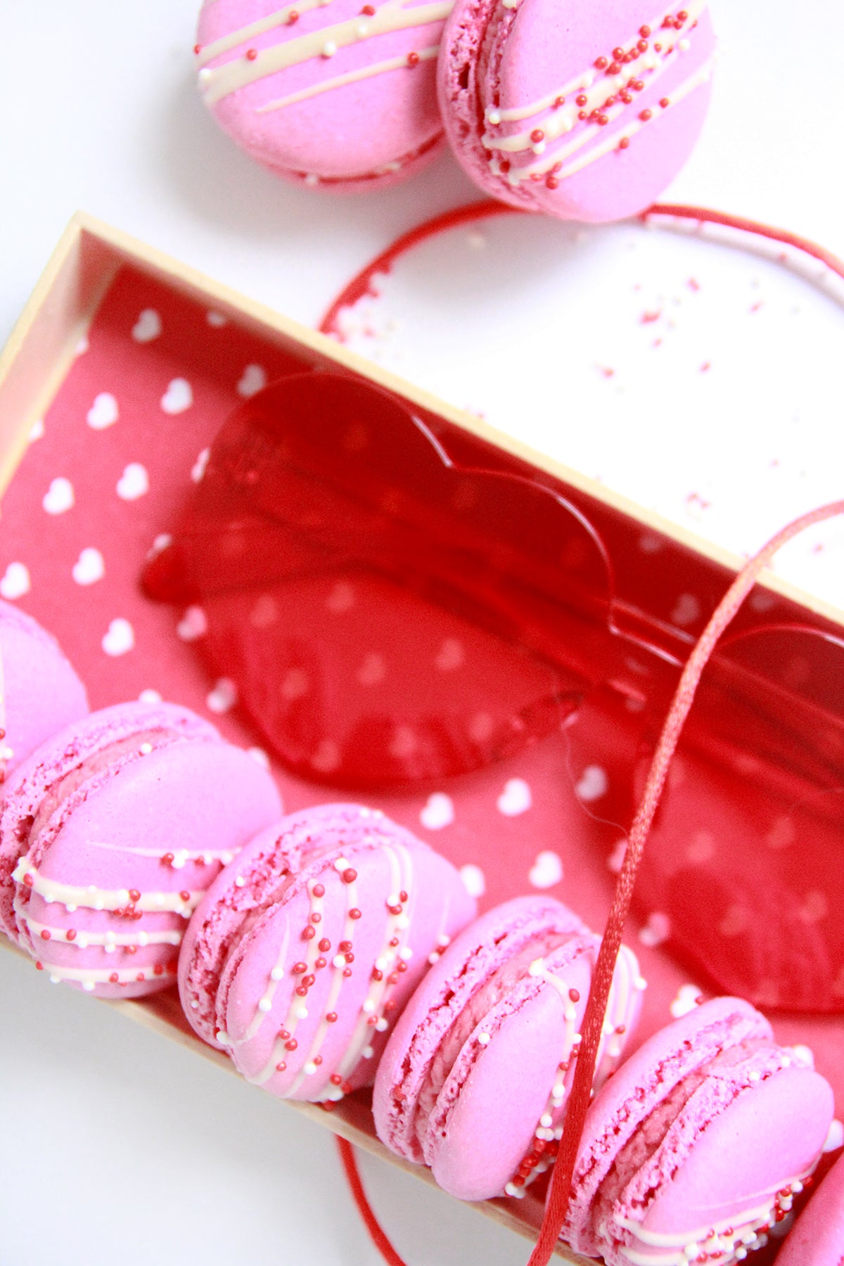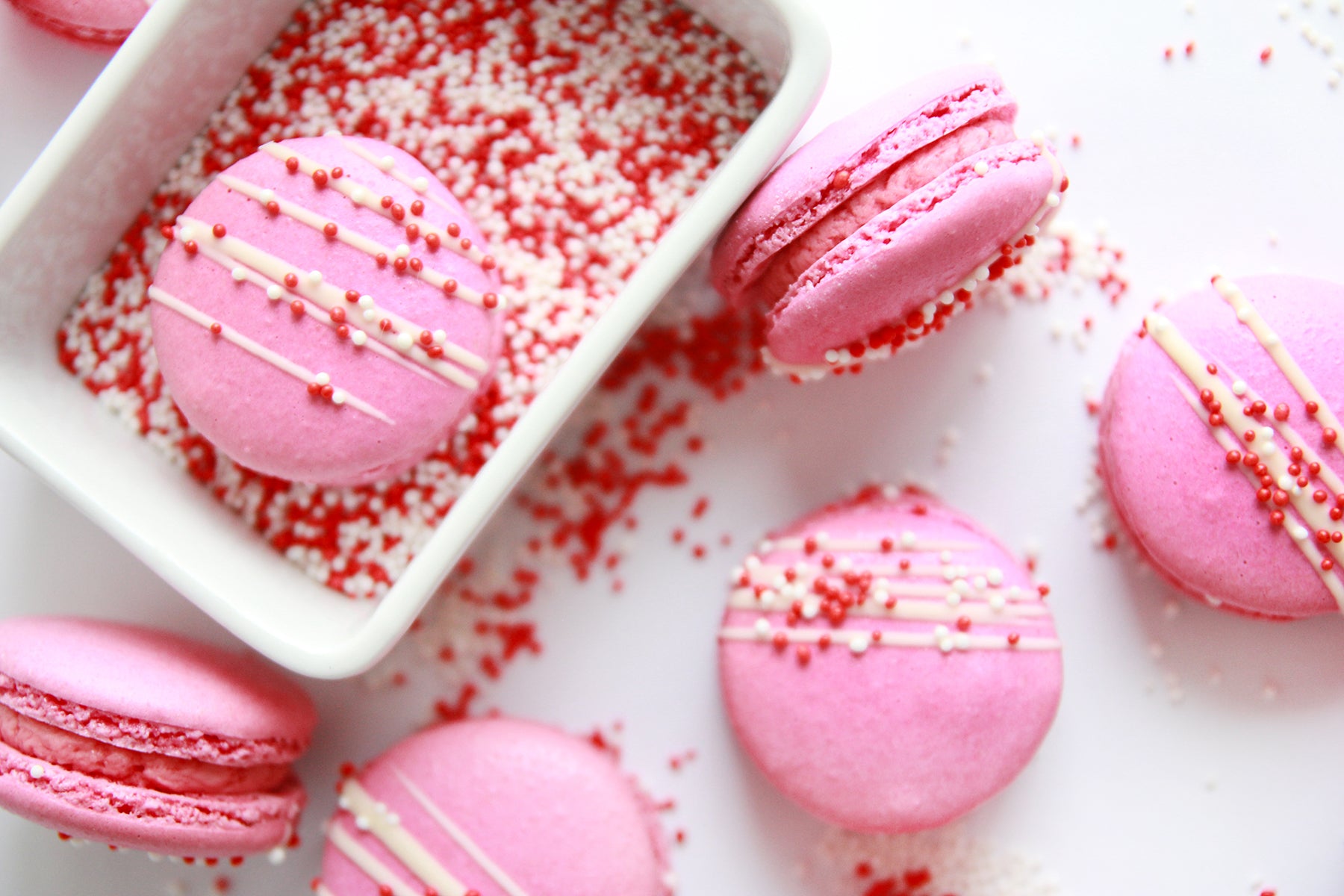 Ingredients: Sugars (sugar, icing sugar (sugar, corn starch)) • Almonds • Egg whites • Butter • Raspberry puree (raspberries, inverted sugar) • White chocolate (sugar, cocoa butter, whole milk powder, soy lecithin, natural vanilla flavour) • Egg yolks (egg yolks, sugar) • Water • Lemon juice • Cochineal • White sprinkles (sugar, dextrin starch, titanium dioxide, carnauba wax) • Red sprinkles(sugar, dextrin starch, allura red, carnauba wax) • Citric acid