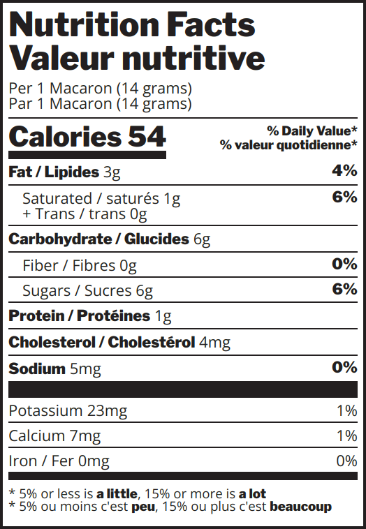 Ingredients: Sugars (icing sugar (sugar, corn starch), sugar) • almonds • egg whites • butter • white chocolate (sugar, cocoa butter, whole milk powder, soy lecithin, natural vanilla flavour) • water • cochineal • strawberries • cranberries